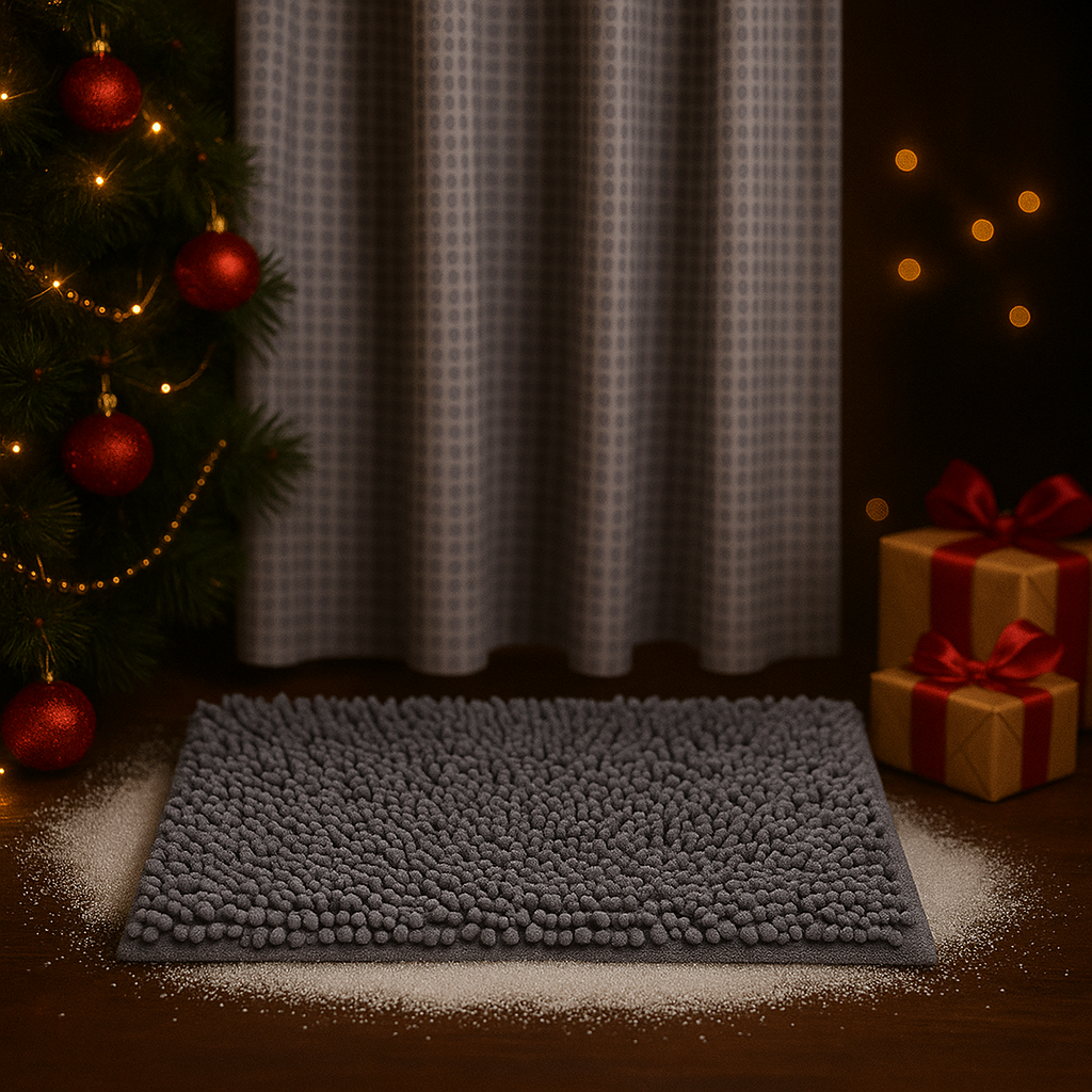- Bademåtte (1 stk.): Blød chenille, 40 × 60 cm, 100 % polyester