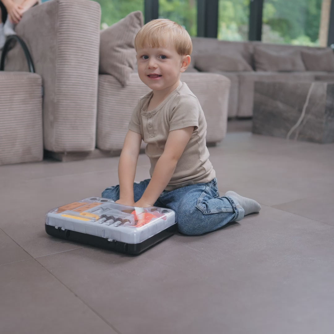 Dit barn kan udforske mange rollespilssituationer med dette alsidige sæt! Fra at reparere legetøj til at bygge fantasifulde konstruktioner - kun fantasien sætter grænser for legen med dette håndboreværktøjsmanchet.