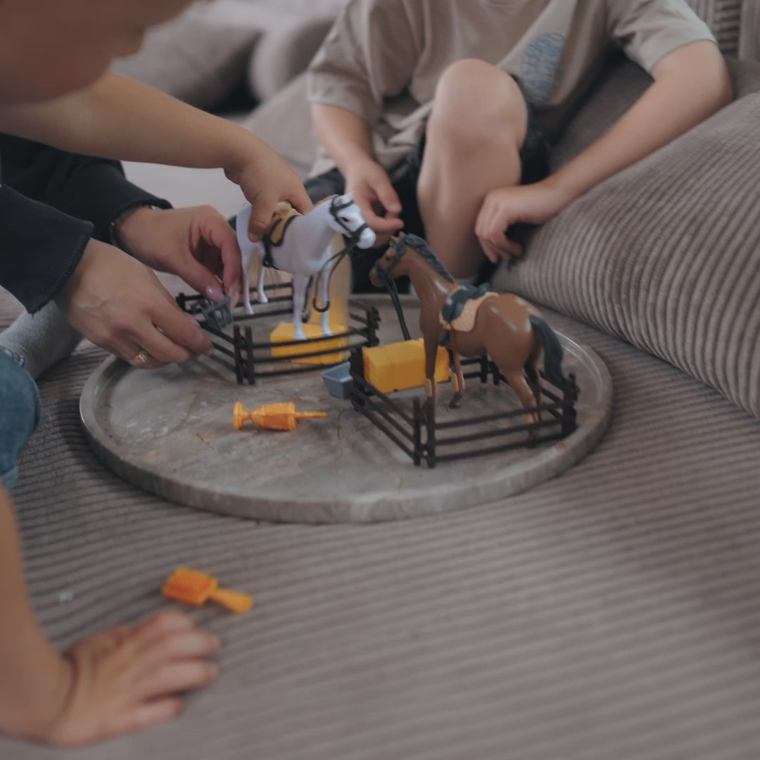 Hvert element i sættet er designet med omhu og realistiske detaljer for at tilføje en ekstra dimension til legen. Med de farverige heste, vil børnene elske at udforske og lege med hvert stykke.