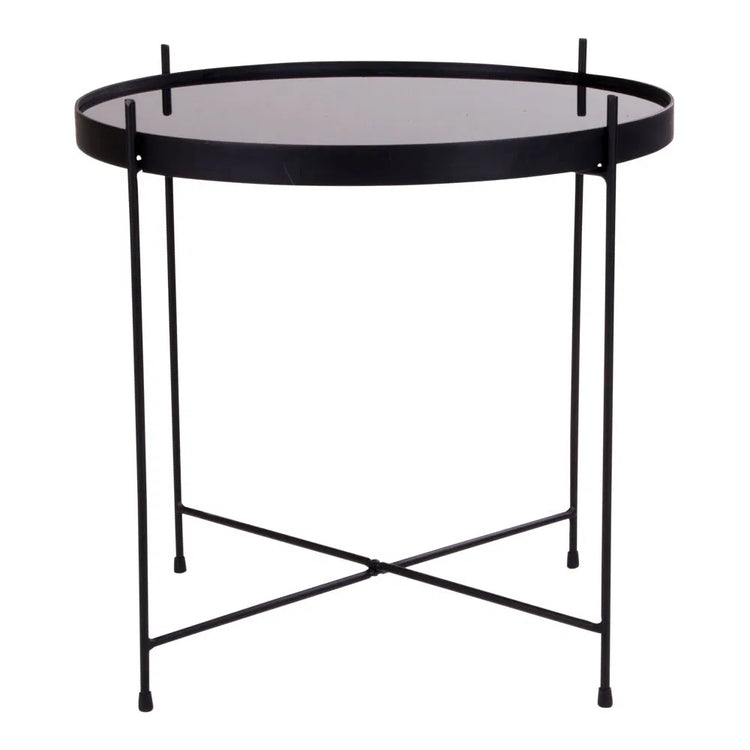 Sofabord i sort stål og glas – Ø48 x H48 cm