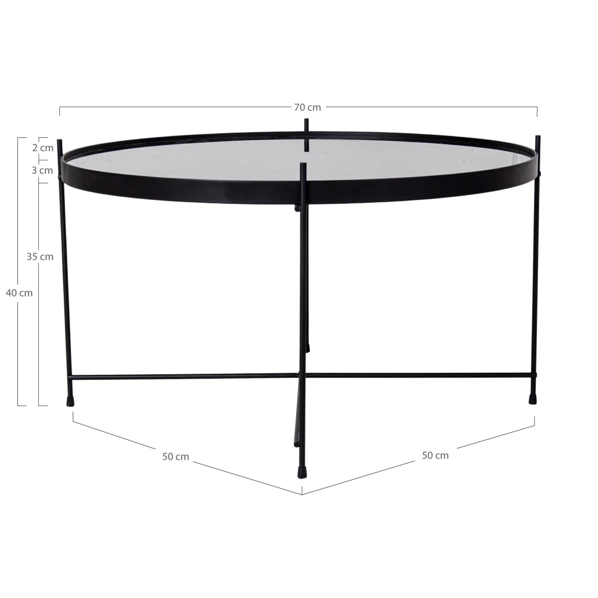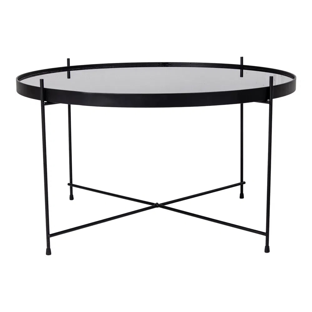 Hjørnebord i sort stål med glas – Ø70 x H40 cm