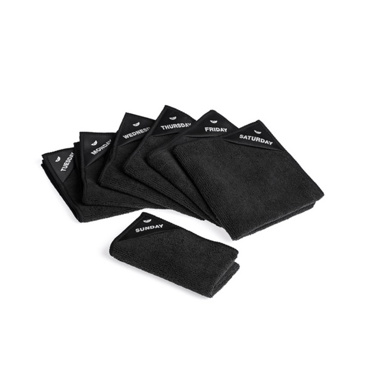 Sættet indeholder 7 klude – én til hver ugedag (man-søn) – så du nemt kan holde styr på hygiejnen.