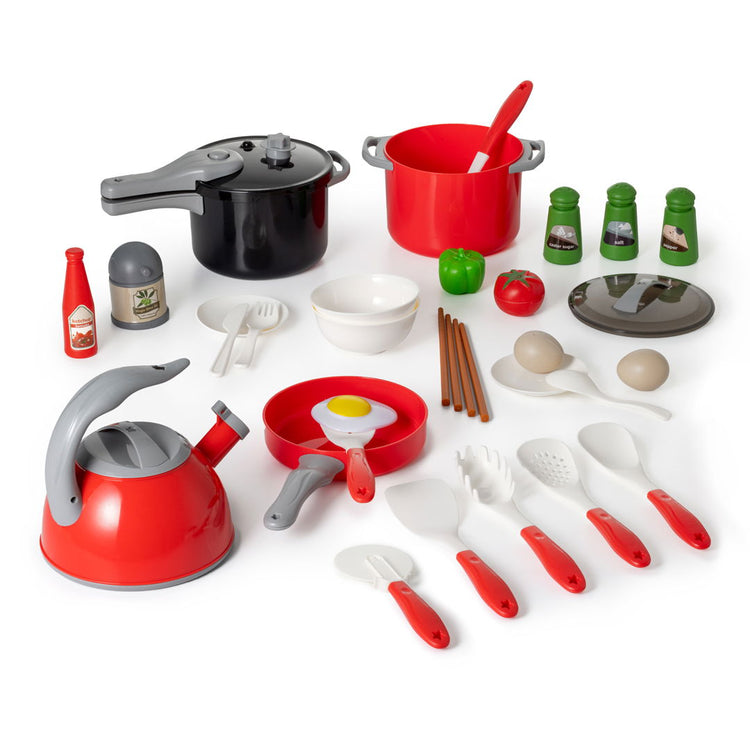 Køkkenlegetøjssæt til børn, rød + grøn, 32 dele