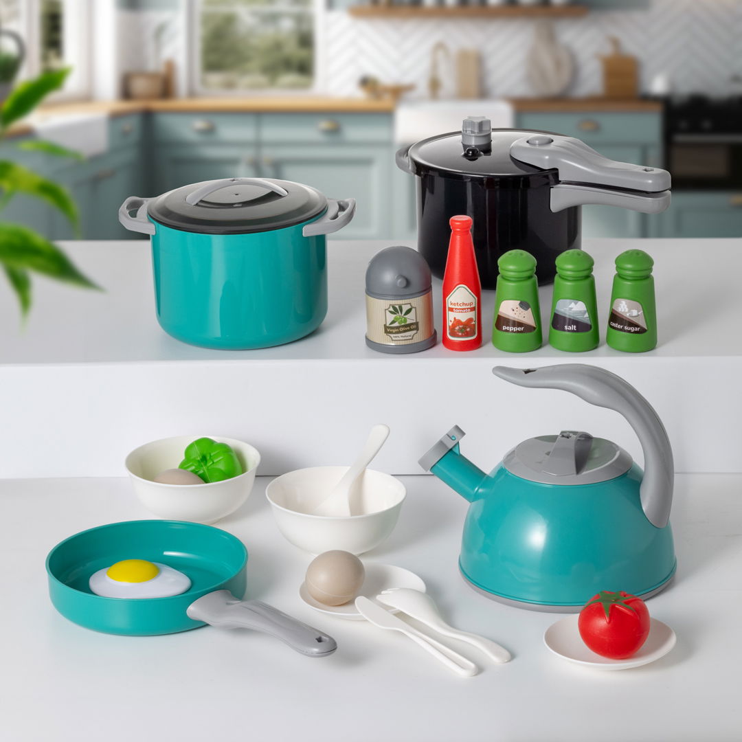 🏡 Komplet køkkensæt: Dette sæt indeholder alt, hvad dine små kokke behøver for at mestre kunsten af madlavning.