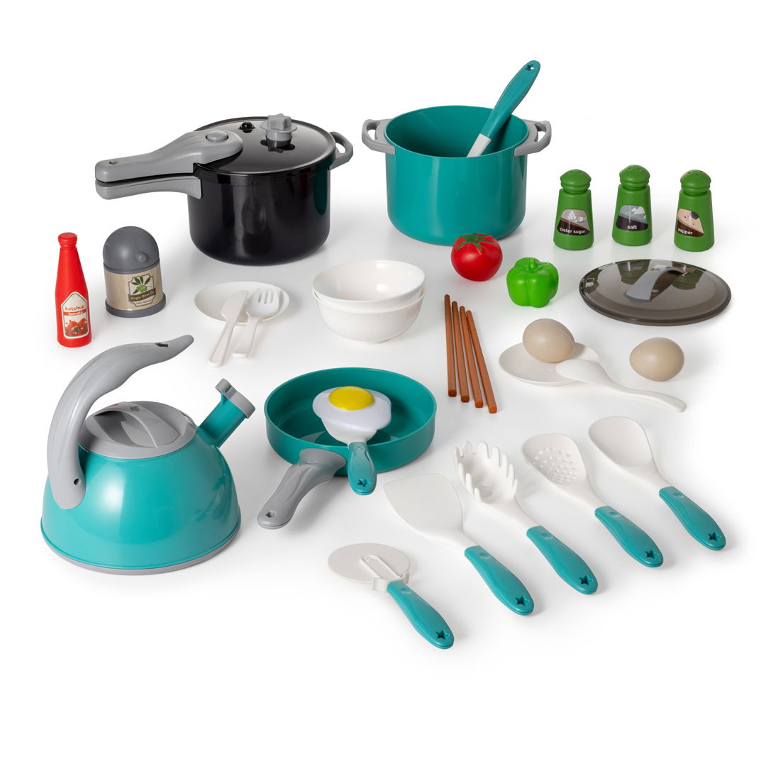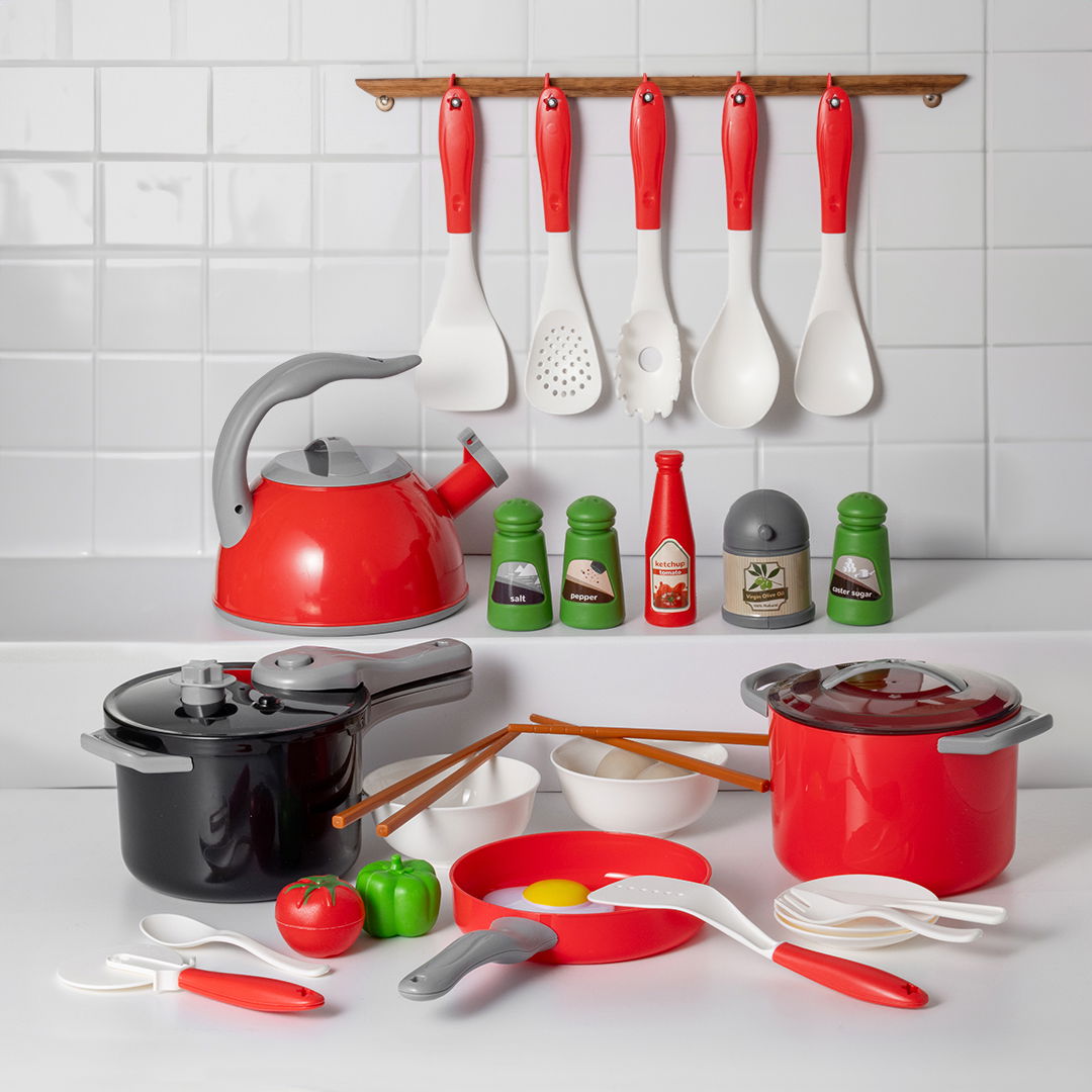 Køkkenlegetøjssæt til børn, rød + grøn, 32 dele