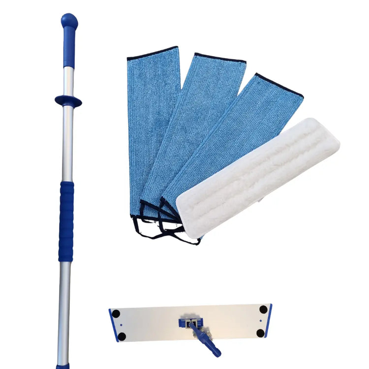 En vigtig del af pakken er tørmoppen, som opsamler støv, hår og snavs, inden du vasker gulvet. Det giver et langt pænere resultat og gør selve gulvvasken både nemmere og hurtigere. Tørmoppen er også ideel til fodlister og hjørner, hvor støv ofte samler sig.