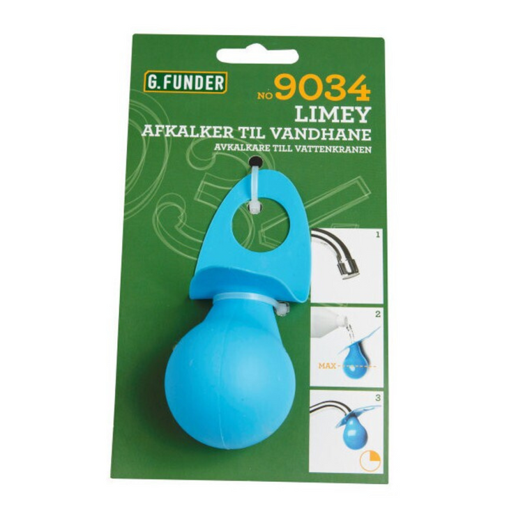 Limey vandhaneafkalker Limey er den nemmeste og hurtigste måde at fjerne kalk i din vandhane. Den fyldes halvt op med kalkrens og sættes på vandhanen, og efter 10 minutter er kalken væk, og der kan skylles efter med rent vand.