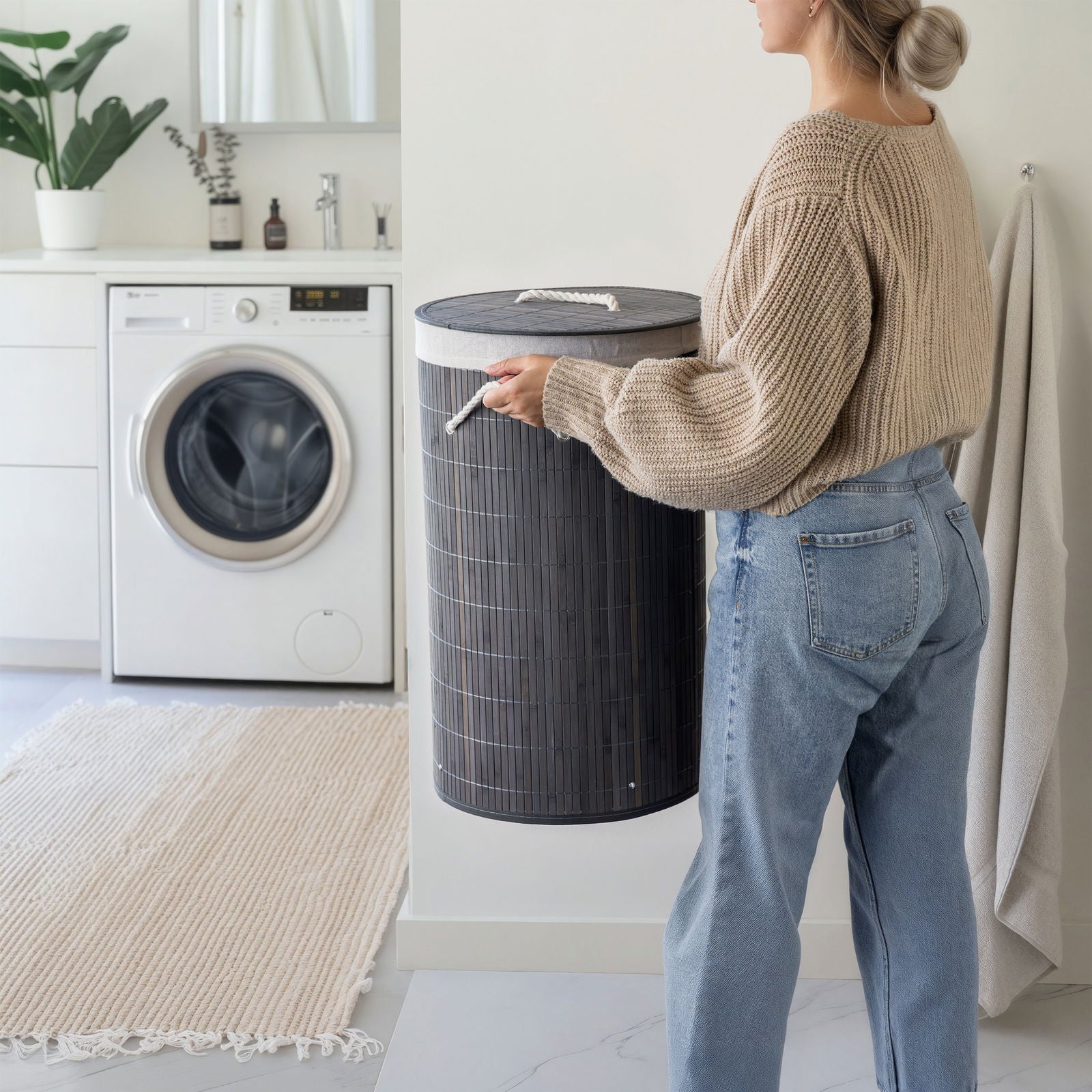 🌿 Nordisk look i grå bambus, der opgradere din vasketøjsrutine og look