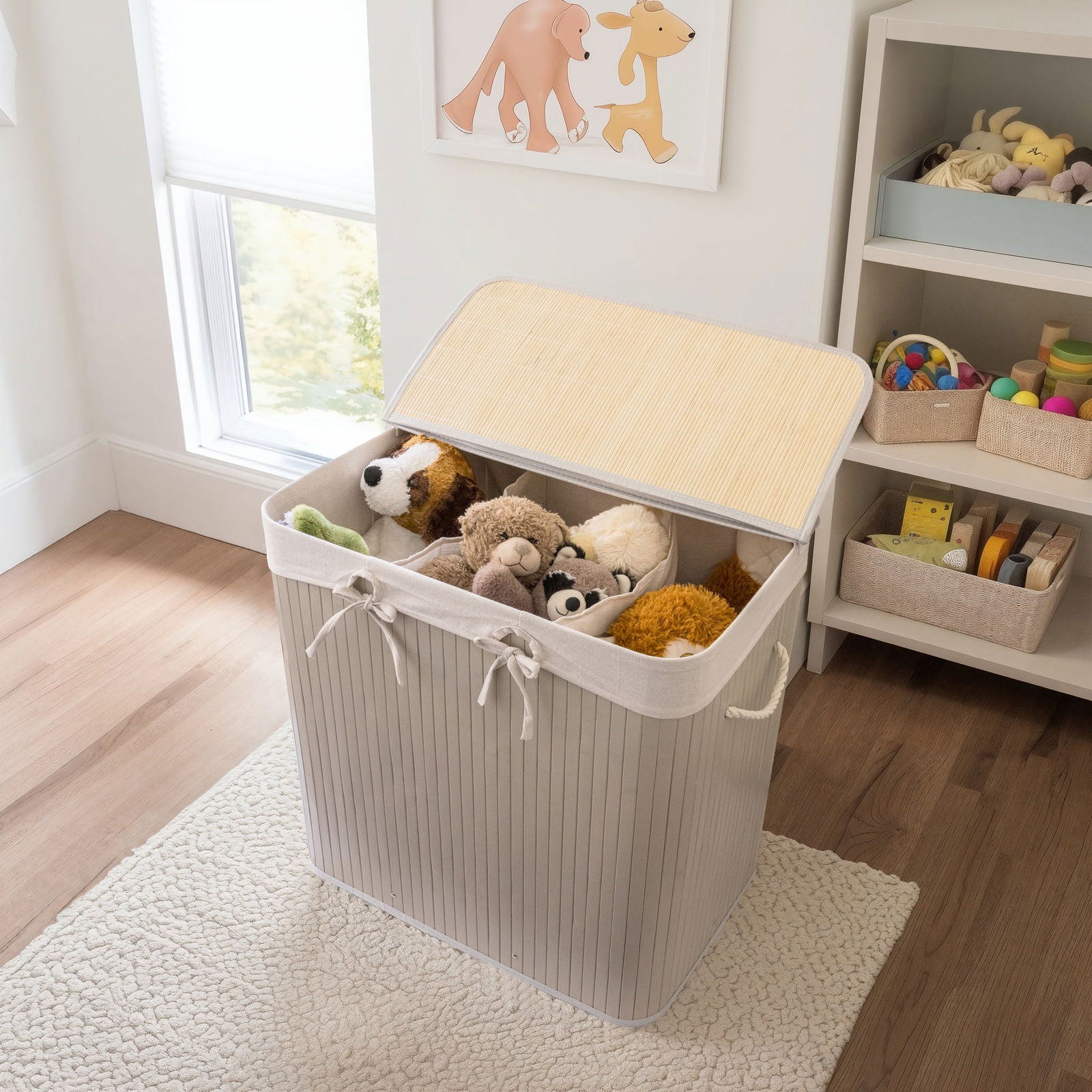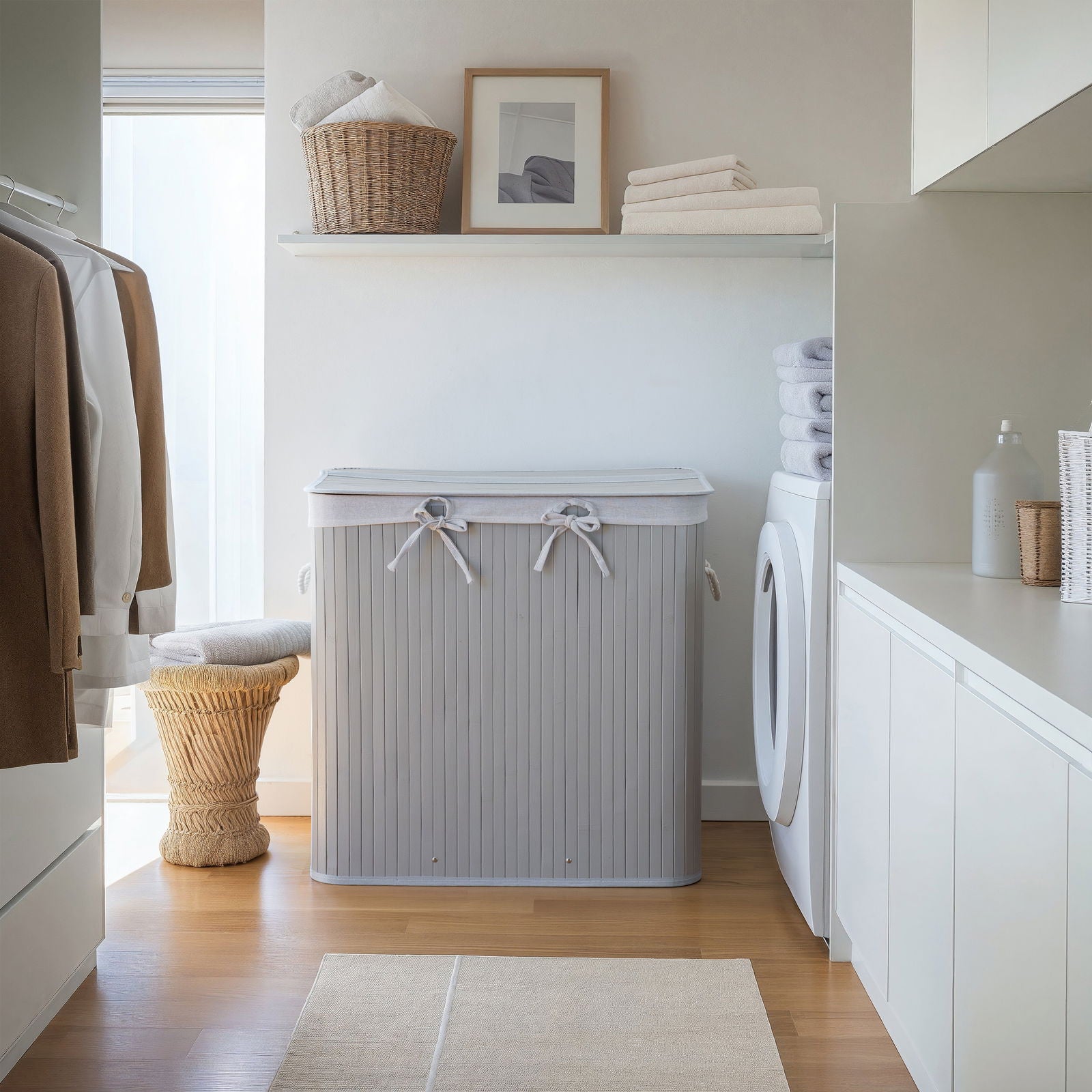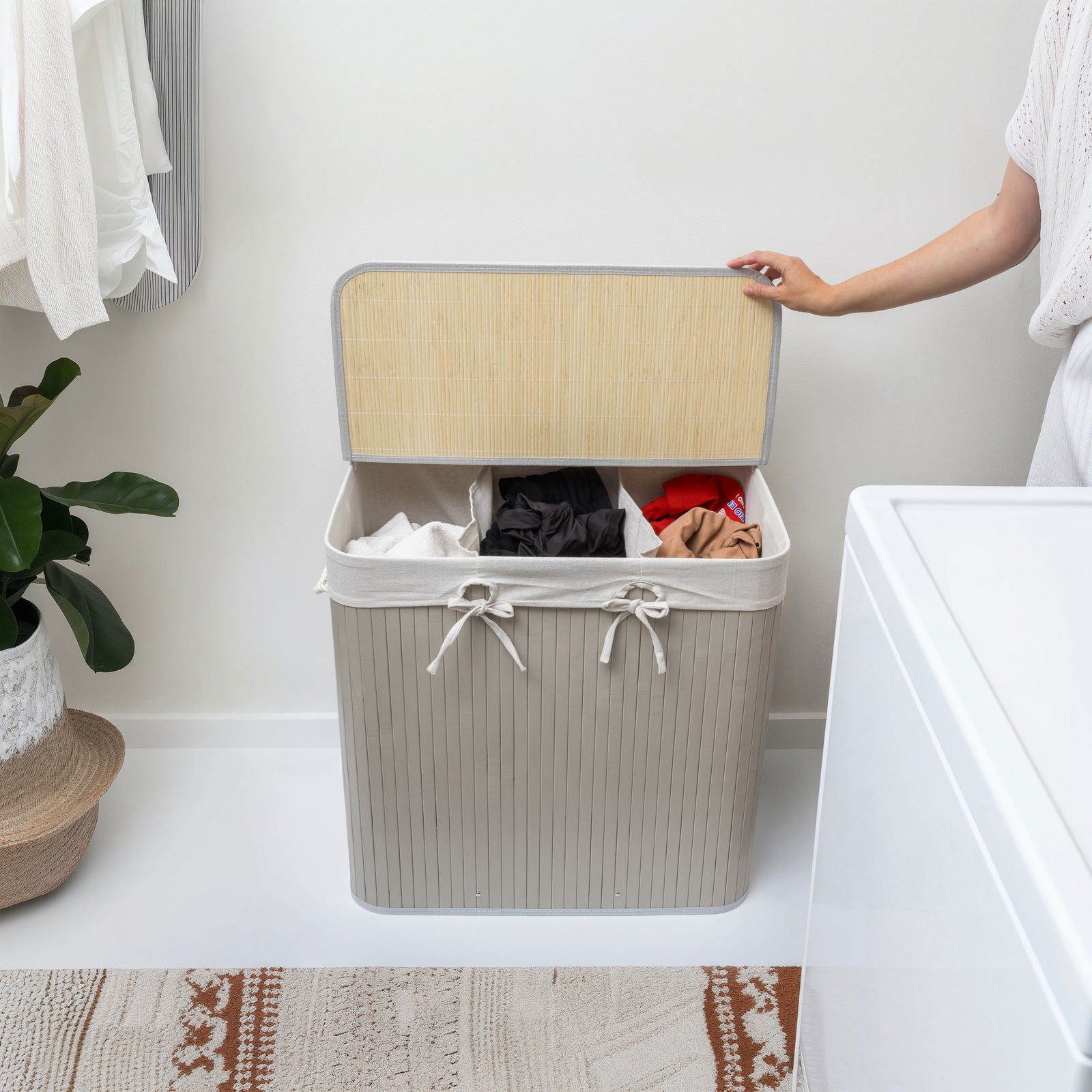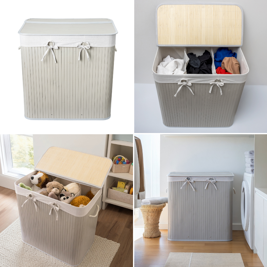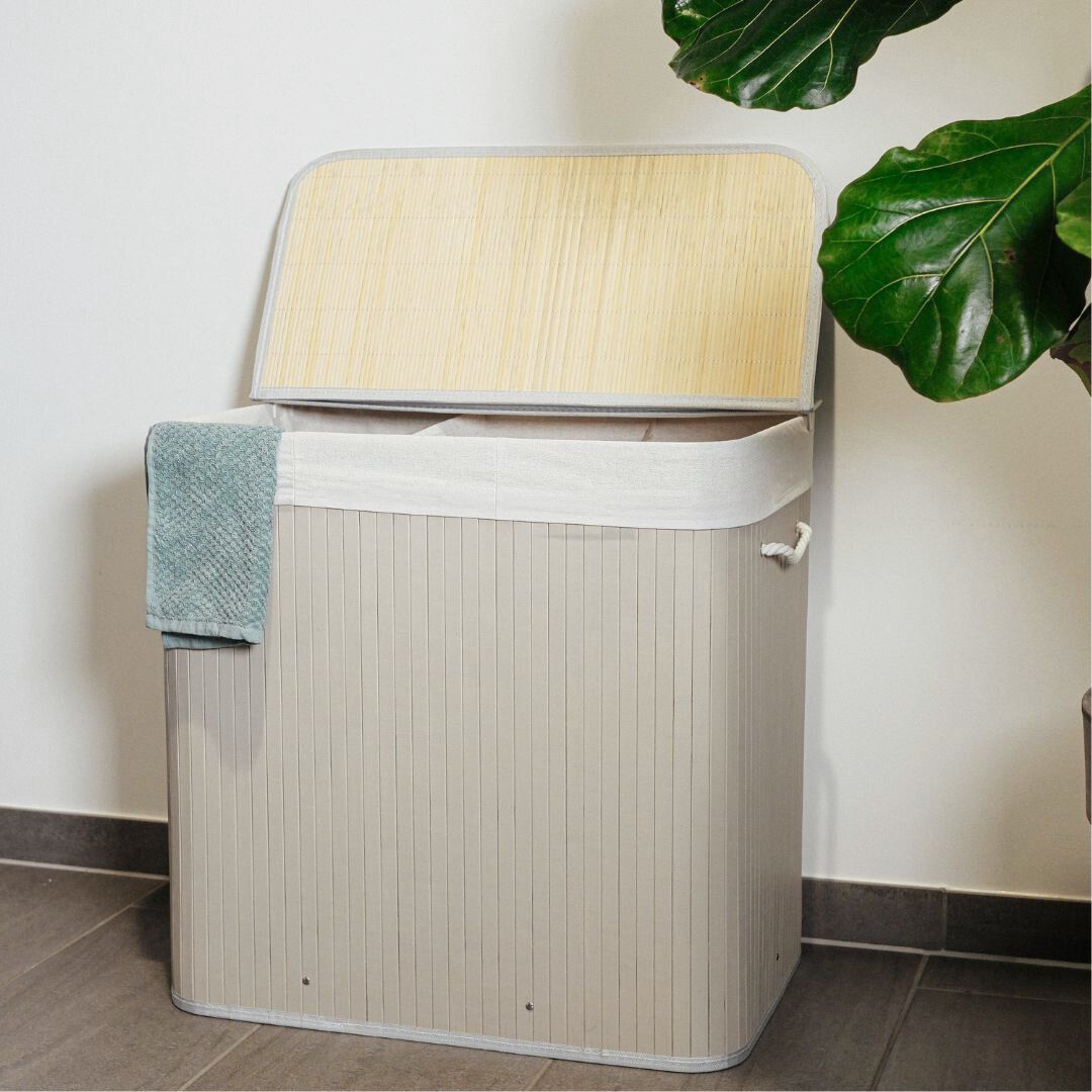 ✨🧺 Nordis – Grå bambus vasketøjskurv med 3 rum (144L) 🧺✨
