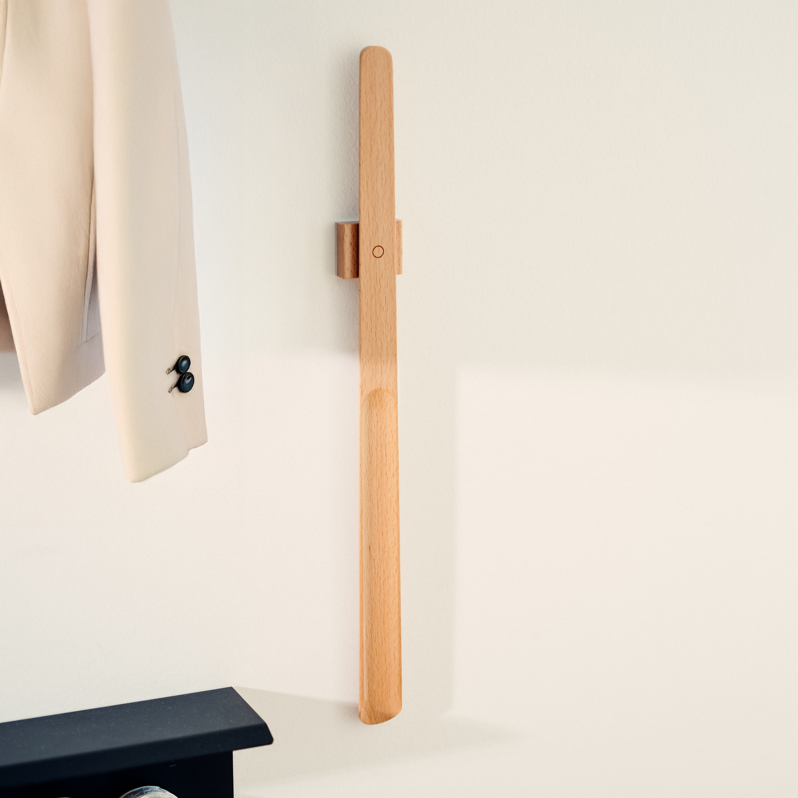 Opgrader din entré med dette eksklusive skohorn i lyst naturtræ – skabt til dig, der ønsker både æstetik og praktisk funktion i hverdagen.