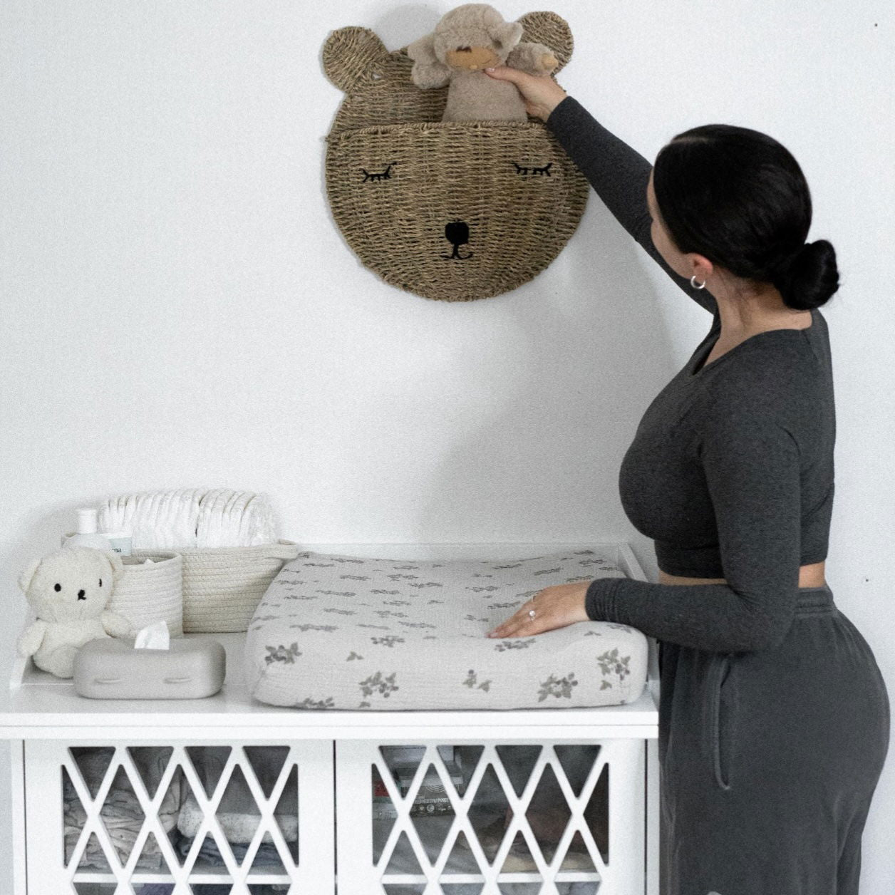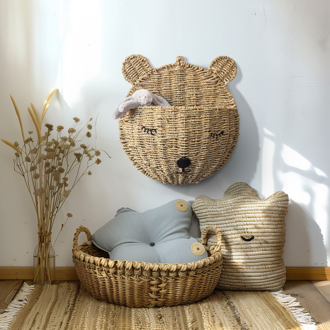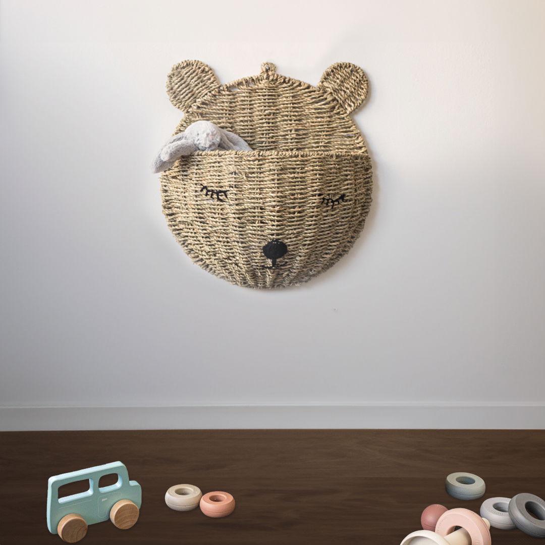Denne vægkurv med bamsemotiv gør det nemt og sjovt for børn at holde orden på legetøj, bøger eller småting.