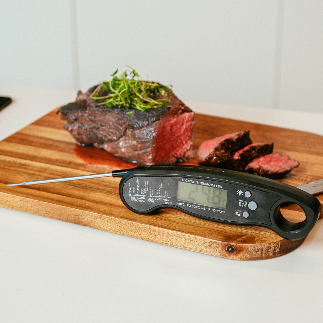 Med det digitale stegetermometer fra Sobczyk er det slut med usikkerhed i køkkenet. Det hurtige og præcise termometer sikrer, at du rammer den ønskede kernetemperatur – uanset om det er en rosa bøf, saftig kylling eller sprødt nybagt brød. 👨🍳✨