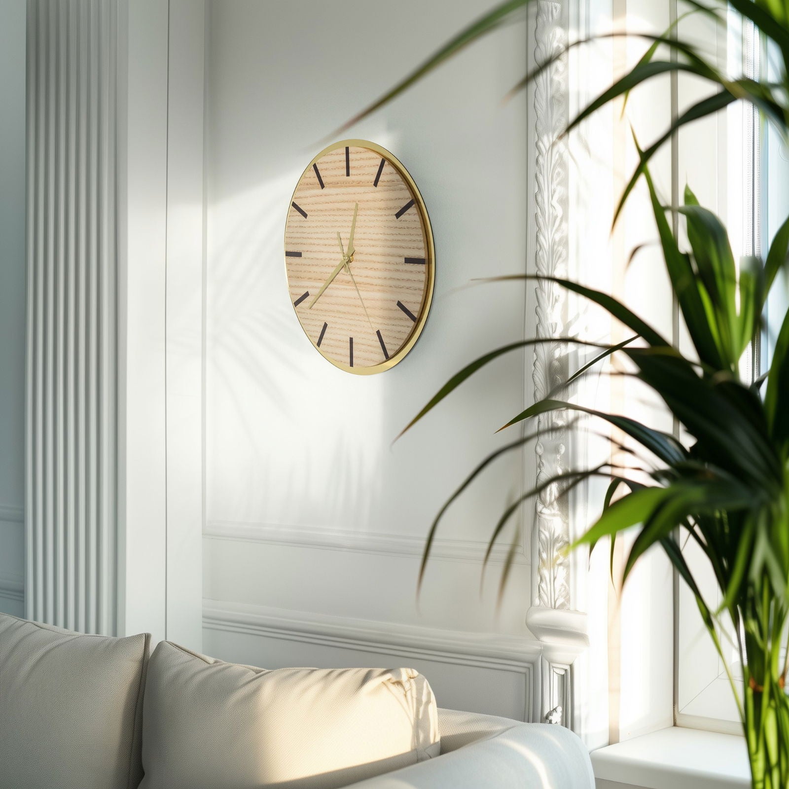 Tilføj et naturligt, moderne touch til dit hjem med dette smukke vægur!